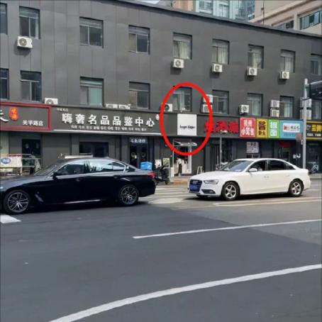 实际一去看,门头大约仅几个平方米,在一座黑黢黢的低矮厂房的一楼,旁边烟酒城、奢侈品品鉴中心的门脸,让这个洋气的招牌,瞬间隐身于“人间烟火”之中。