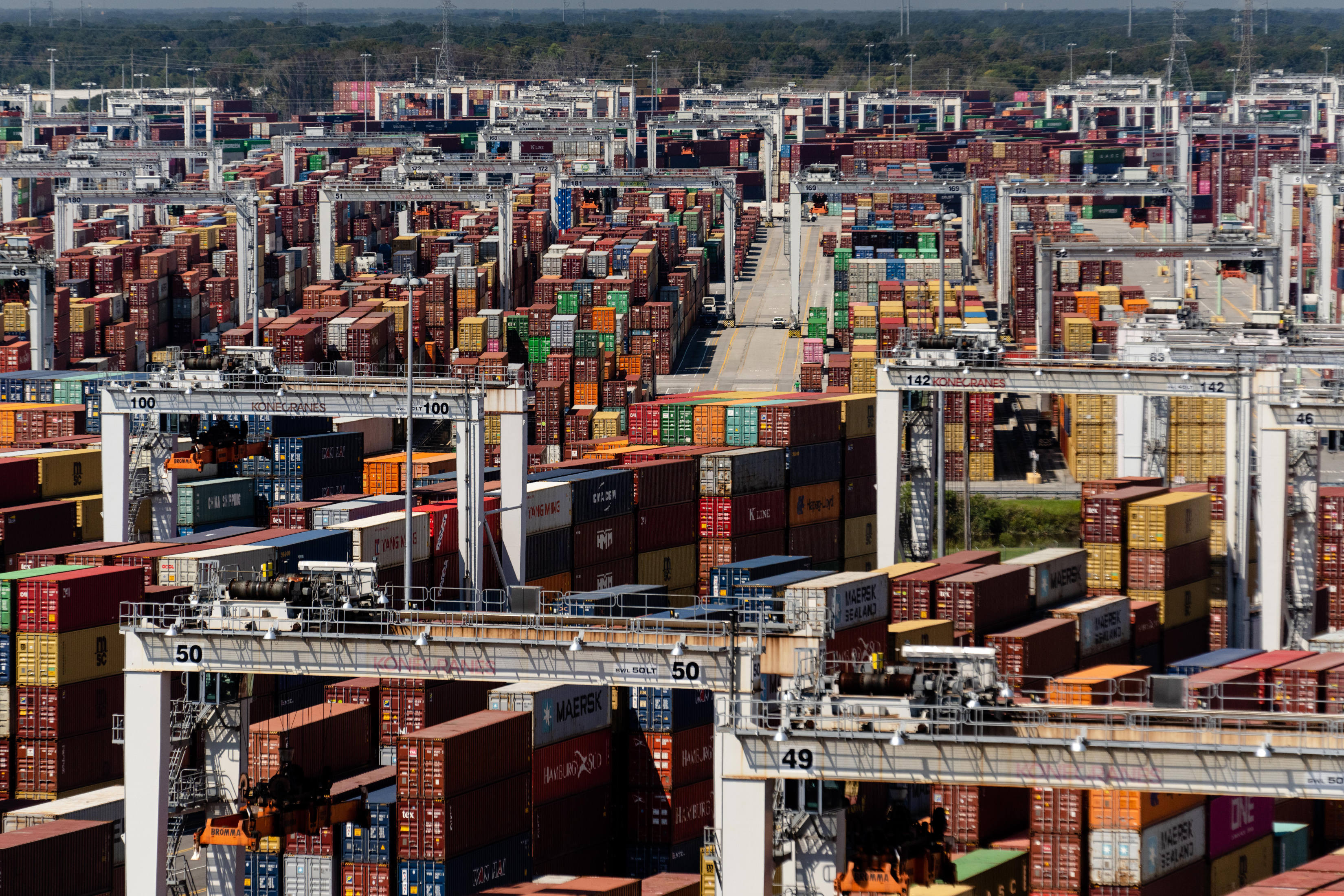 堆积在萨凡纳港口的集装箱货柜。图片摄于2021年9月29日。图片来源:Erin Schaff