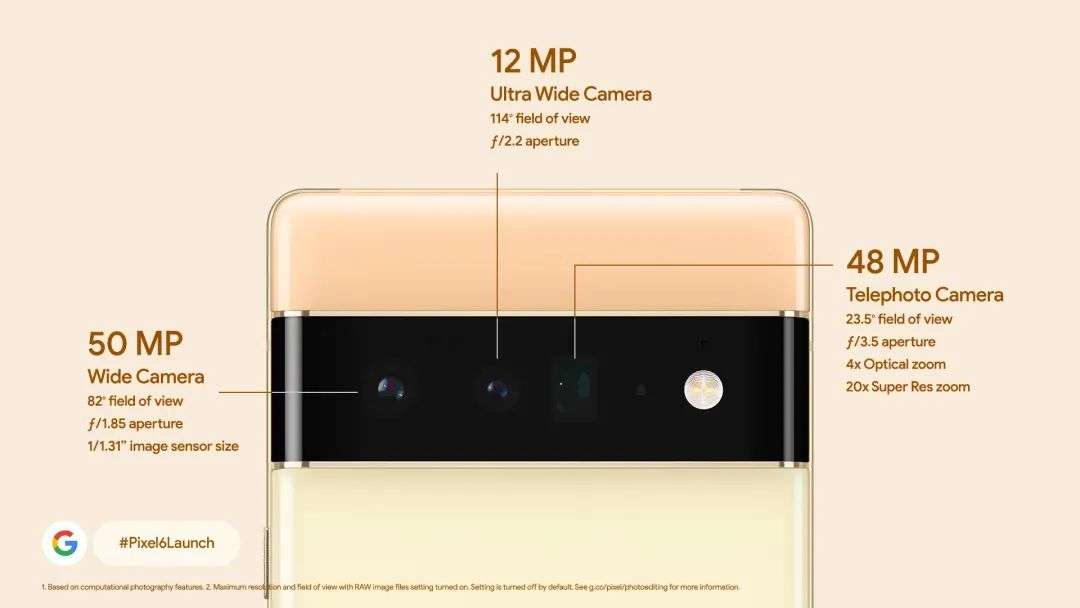 Pixel 6 Pro则是三摄模组,增加了一颗4800万像素长焦镜头(4倍光学变焦)。前摄也被提升至1100万像素。