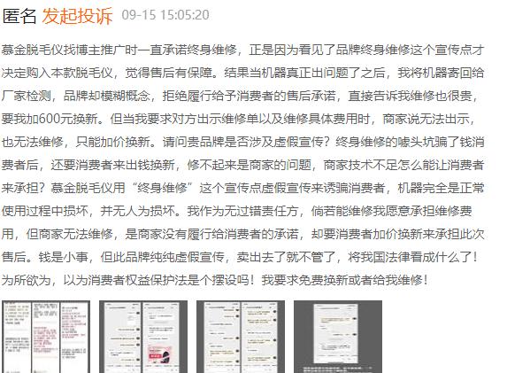 在黑猫投诉上,有很多人反馈慕金脱毛仪的售后太差,承诺的终身维修实际上需要加价换新。