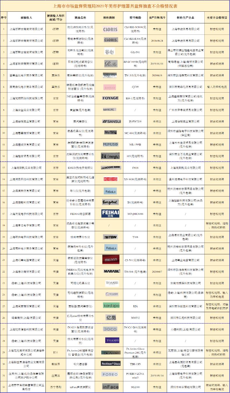 美容仪赛道越来越热,质量却是参差不齐。一周前,上海市场监管局针对消费者投诉对黄浦和杨浦两个区域内4家销售企业和天猫、淘宝等5家电商平台进行了监督抽查,发现了32批次的不合格家用美容仪。不合格的项目涉及触及带电部件的防护、输入功率和电流、结构、耐热和耐燃、标志和说明。导入仪、蒸脸仪、毛孔清洁仪等等都有不合格的。