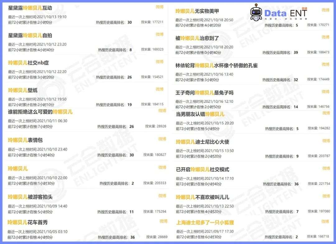 截止10月18日,共收获了20个微博热搜,话题阅读量超过2.7亿,讨论超百万。抖音上带玲娜贝儿大名的播放达1.8亿次,抖音热搜6个,随便打开一个社交软件,扑面而来的就是玲娜贝儿与粉丝见面时的热情营业。