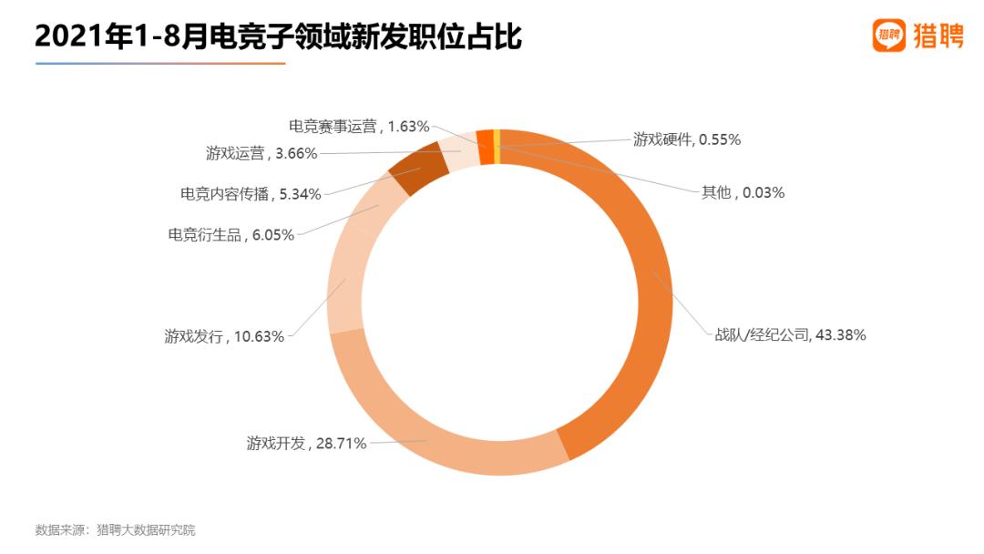 2电竞子领域新发职位占比:战队/经纪公司职位最多,占比超4成