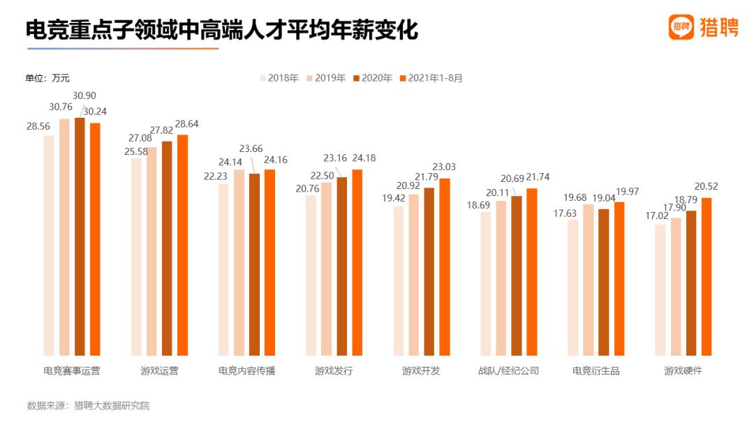 电竞子领域中高端人才薪资:普遍持续上涨,电竞赛事运营薪资领先