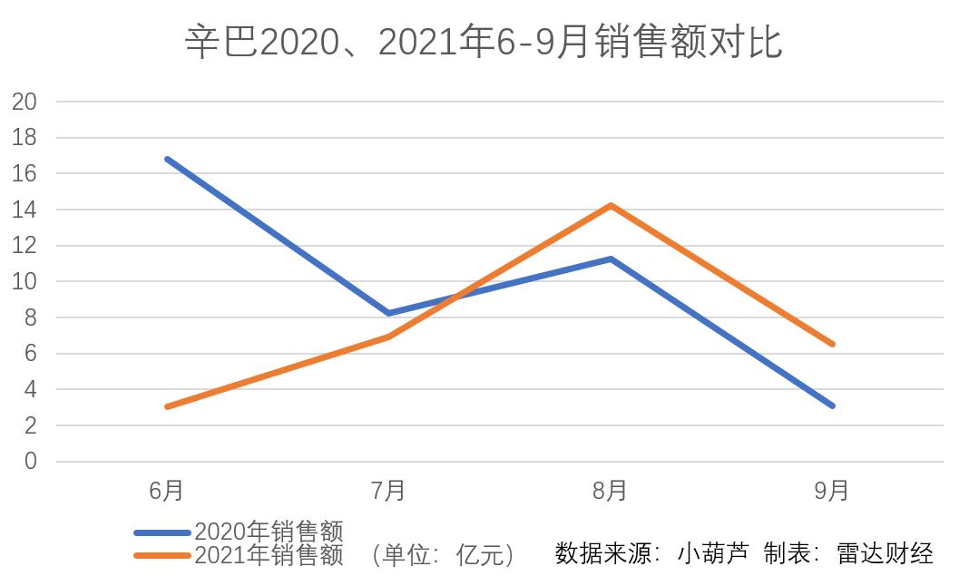 从结果上来看,辛巴的流量确实有所减弱,其销售额与2020年相比也有较为明显的下滑。