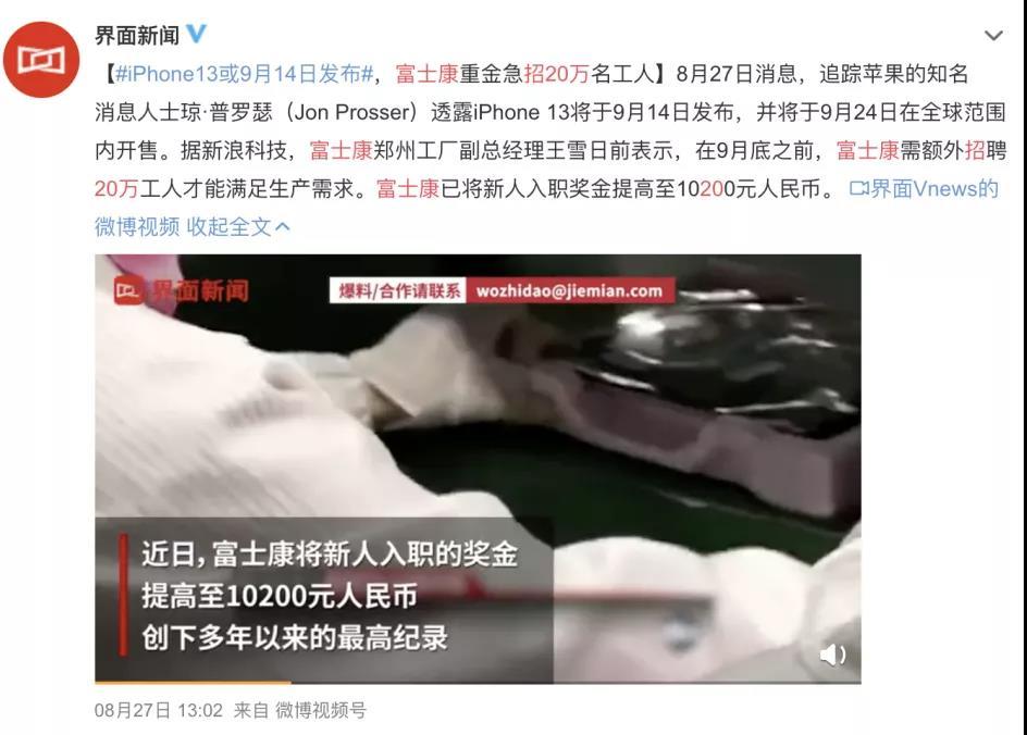 现在,富士康这样的流水线工厂却遭遇了“用工荒”。9月底前,富士康急招20万名工人,并许下高额奖金。只要在职90天,在岗55天,遵纪守规,每个新人都能拿到10200元人民币。在郑州港区富士康,这个数字在几天前曾达到13000元。