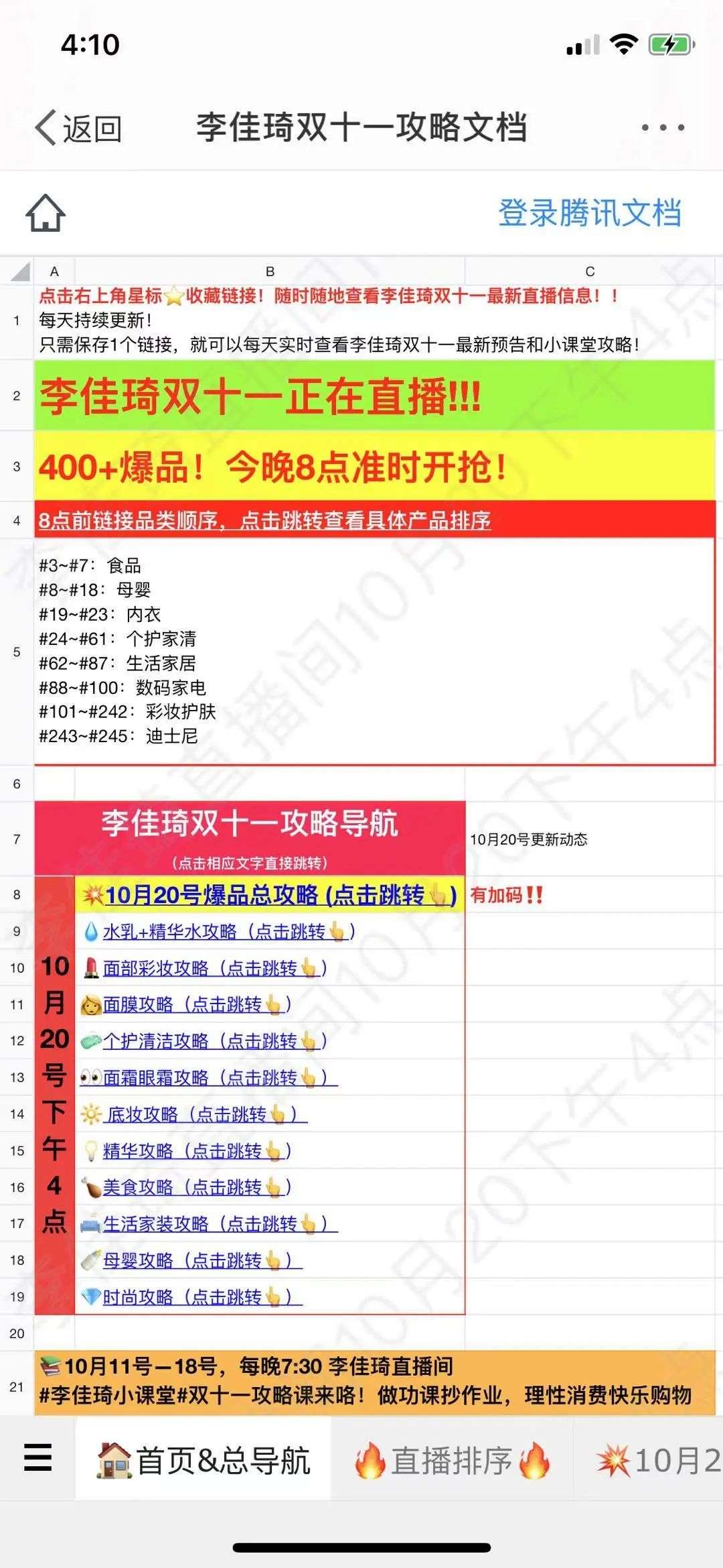 没有时间蹲直播,怎么比价?李佳琦和薇娅都在微博推出了一份实时更新的腾讯文档,双11上架的全品类产品优惠一目了然,此外,薇娅还上线了“薇娅惊喜社VIP中心”微信小程序,之后可能会上线直播间购物积分兑换礼品的功能。