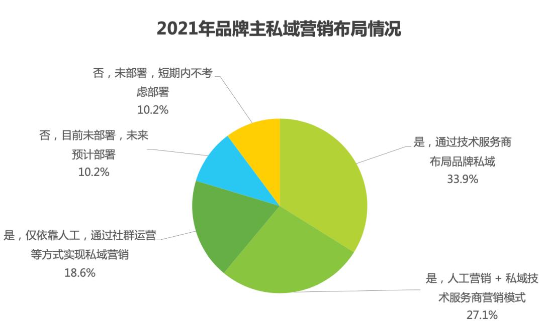 另据艾瑞报告,受访公司中有近8成已布局私域,短期内不考虑部署私域流量的公司仅有10.2%。
