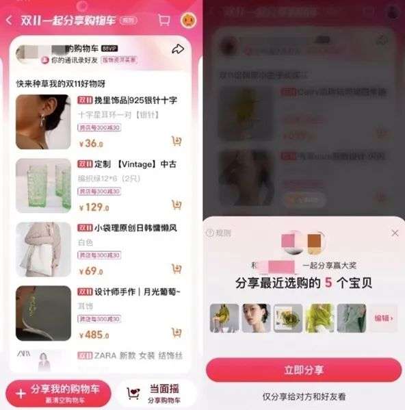 套路越来越多,优惠越来越少,这必然使得消费者对淘宝的双十一失去兴趣,从而转战其他电商平台。为了留住这些流失的用户,淘宝在今年可谓是付出了不少努力,日前的报道称,淘宝的开发团队已在测试微信端的群聊、朋友圈等分享路径。也就是说,淘宝购物车有望直接分享到微信朋友圈。阿里方面表示,淘宝将赶在双11之前上线“购物车分享到微信朋友圈”功能。