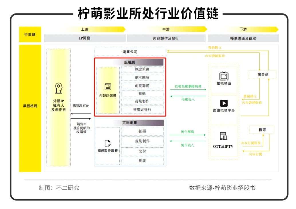 在「不二研究」看来,目前,国内知名网络视频平台数量有限,高流量加持下话语权更强,作为内容参与网络平台分成的先驱,柠萌影业仍处于产业中游,若不能尽快摆脱版权剧授权单脚行走,难免受到下游桎梏。
