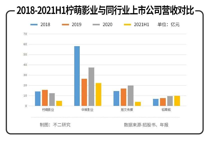 但是,「不二研究」发现,柠萌影业的经营数据并不稳定。招股书数据显示,2018~2021年上半年,柠萌影业营业收入分别为16.06亿、17.94亿、14.26亿和5.65亿元,净利润分别为2.51亿、0.80亿、0.63亿和0.83亿,处于波动下滑的态势中。