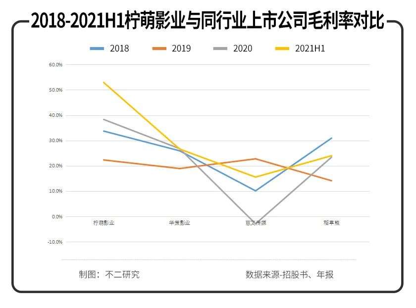 从毛利率来看,柠萌影业表现尚可。招股书显示,2018~2021年上半年,柠萌影业毛利率分别为33.7%、22.3%、38.3%和52.9%。