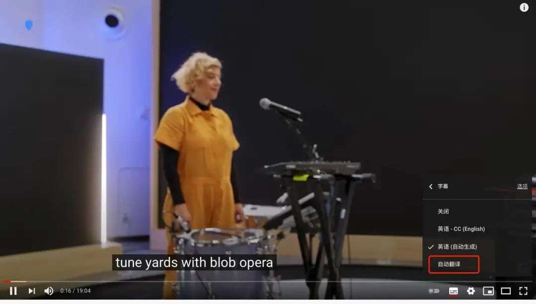 ▲Google 旗下应用 YouTube 的自动翻译功能