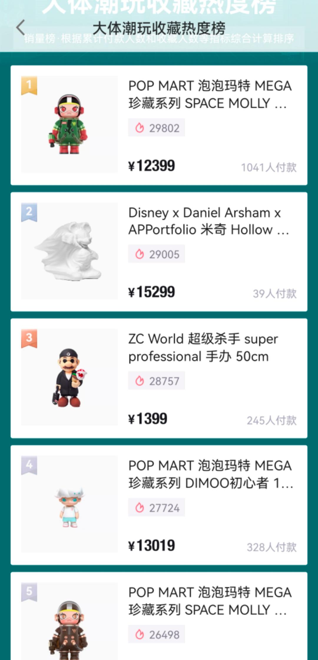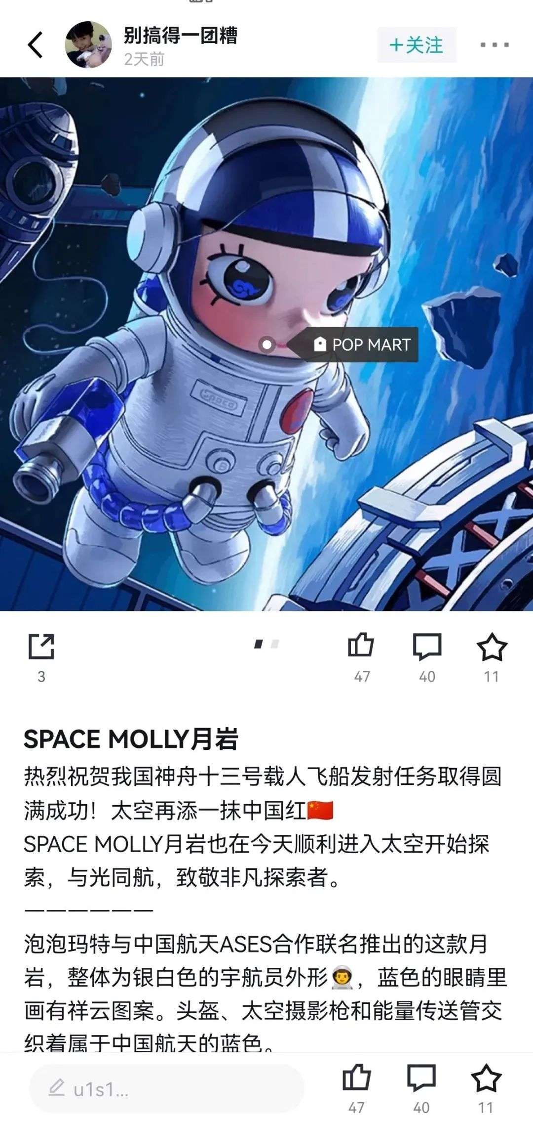 据livy介绍,同样在不同款式上线初期,他就会开始关注市场。“小红书、潮玩族(app)、超话、玩家群转一圈,这个款值不值得炒就有数了。200个以下的,明星网红爱晒的,艺术家和大ip联名款最值钱。像SPACE MOLLY系列,就一定值得炒。”