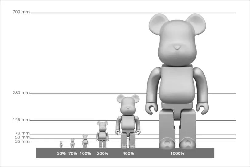 分析可以发现,潮玩圈3000元以上的“高价单品”,都不属于这两种品牌最常见的“盲盒款”,而是400%到1000%的大体“明盒”产品。其中,积木熊需要1000%才能进入炒作区。而泡泡玛特可炒的种类更多,从22cm到30cm再到70cm大小不等,随着稀有和美观程度溢价不同。