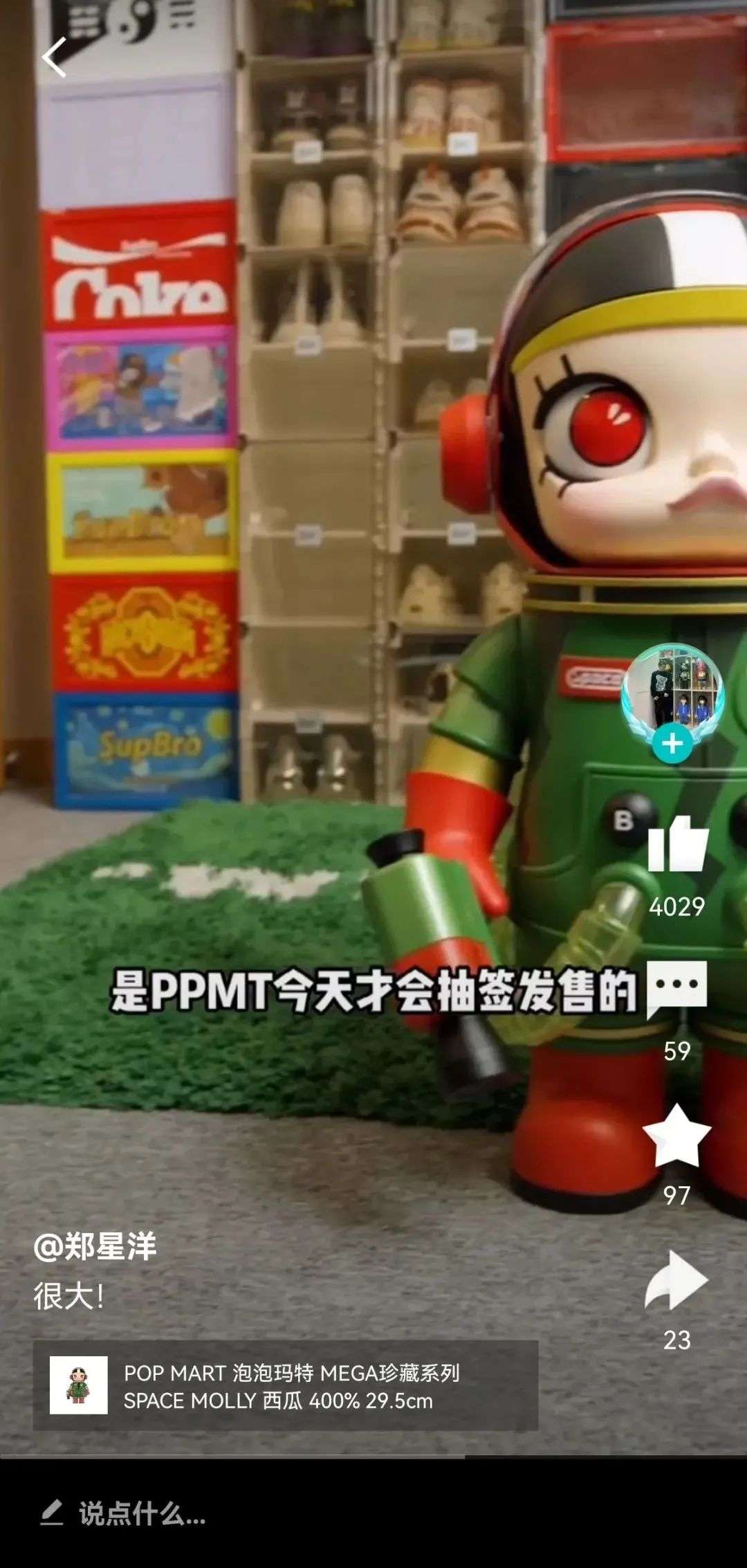 在许多大体潮玩发售前,不少明星艺人和潮玩博主便常常提前拥有,且在社交平台晒的五花八门。得物上常会看见潮玩博主发布视频,全方位展示今天才抽签发售的某款新品大娃。