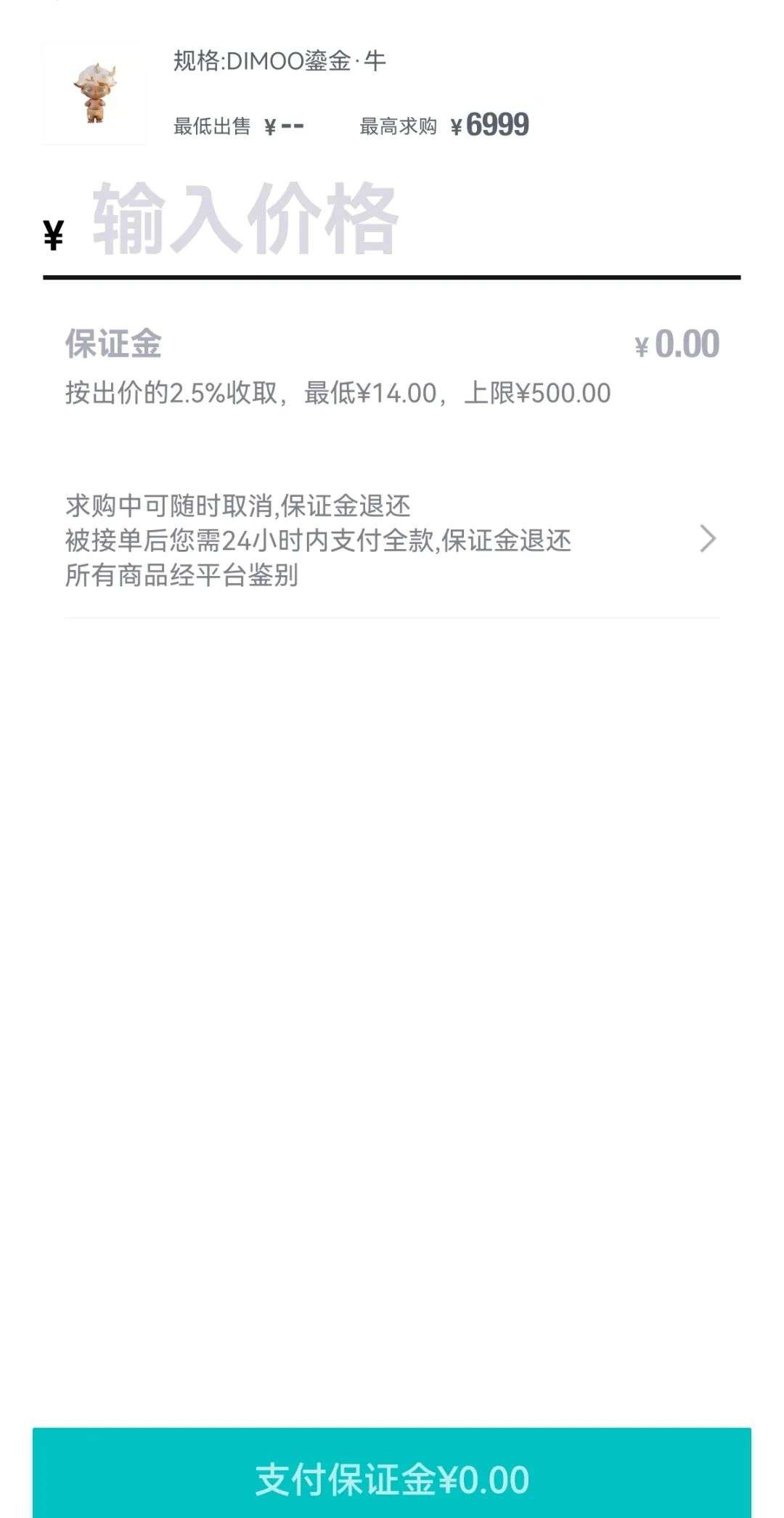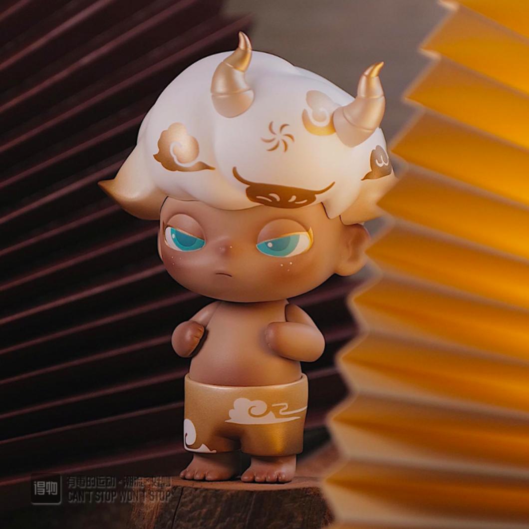 以最近丫丫入手的一款DIMOO鎏金牛大娃为例,这款售价920元的12cm大娃在上线前,她向黄牛预订价格为2700。抽签结果公布后,价格就上升到了3500,而到现在,这款大娃在闲鱼售价已经在4500+。