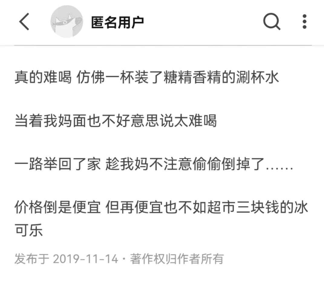 “这几天看到处是蜜雪冰城的夸夸贴,明明难喝得要死,甜腻的瓶装饮料的味道啊!”