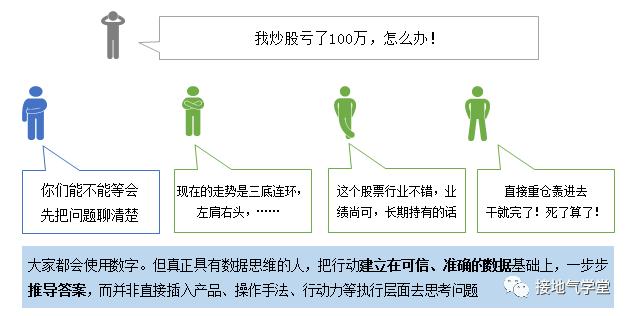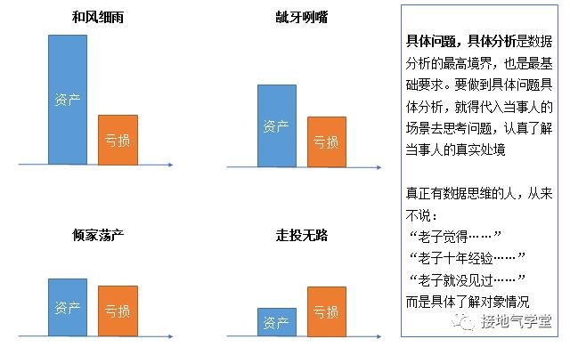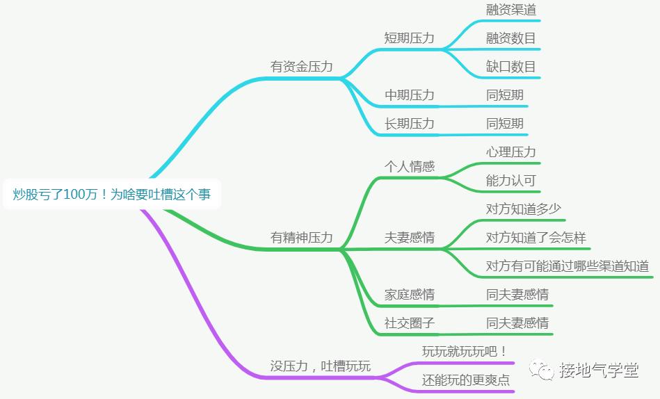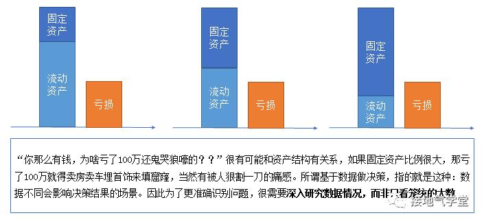 实际上,凡是涉及大小、多少、高低、快慢等等评价的问题,都和数据有关。在解决问题的时候,需要随时警惕这些形容词,要做的数据思维也非常多。就比如“我炒股亏了100万”,到底这100万对于“我”意味着什么,仔细想想,也有很多情况:(如下图)