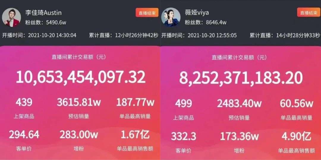 李佳琦、薇娅一夜卖出107亿、83亿。