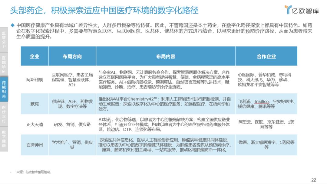 亿欧智库也在医疗健康数字化的研究过程中,参考了许多针对院端、药械企业、患者全病程数字化管理的优秀企业案例。