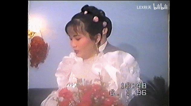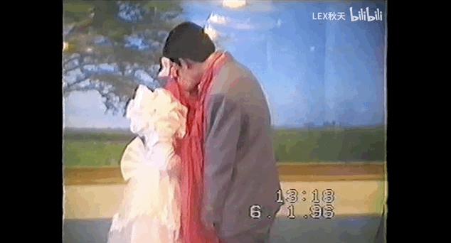 两人当时的穿衣风格颇具90年代色彩,并且在司仪面前有些拘谨,一直偷偷抿嘴。