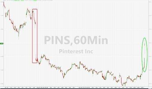 上述第一家媒体的知情人士称,交易条款可能还有变动,不一定两家公司经过磋商最终能达成协议。但股市投资者迅速做出反应。传出上述消息后,美股早盘尾声时,Pinterest(PINS)闻讯跳涨,约半小时内,股价从56美元下方一度涨至66美元,从微涨迅速扩大到约19%的涨幅,因涨势太猛,盘中曾临时暂停交易,最终收涨约12.8%。