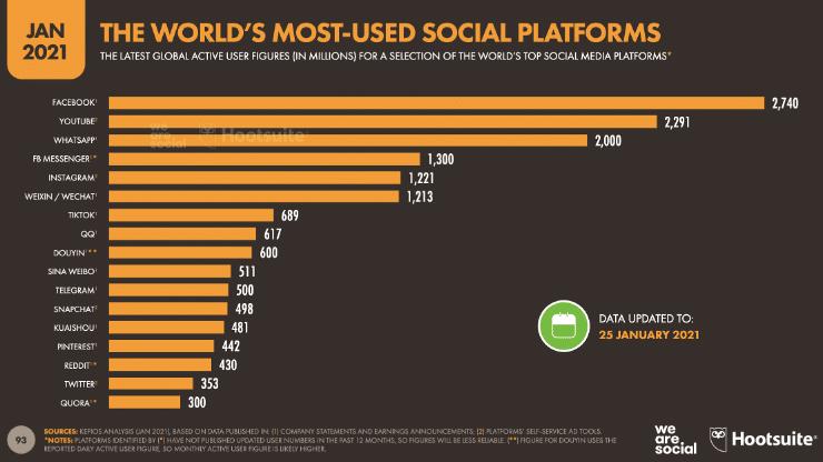 去年1月eMarketer的报告称,Pinterest超越了Snapchat,成为仅次于Facebook和Instagram的美国第三大社交媒体。今年1月,按全球活跃用户估算,Pinterest是全球第14大社交媒体,排名超过Twitter,排在Facebook旗下三大社交媒体、TikTok和中国的微博、抖音、QQ、快手之后。