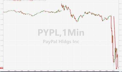 而PayPal(PYPL)股价加速下跌,跌幅从早盘尾声时的0.4%左右扩大到午盘的6%以上,午盘刷新日低时跌近7%,收跌4.9%。