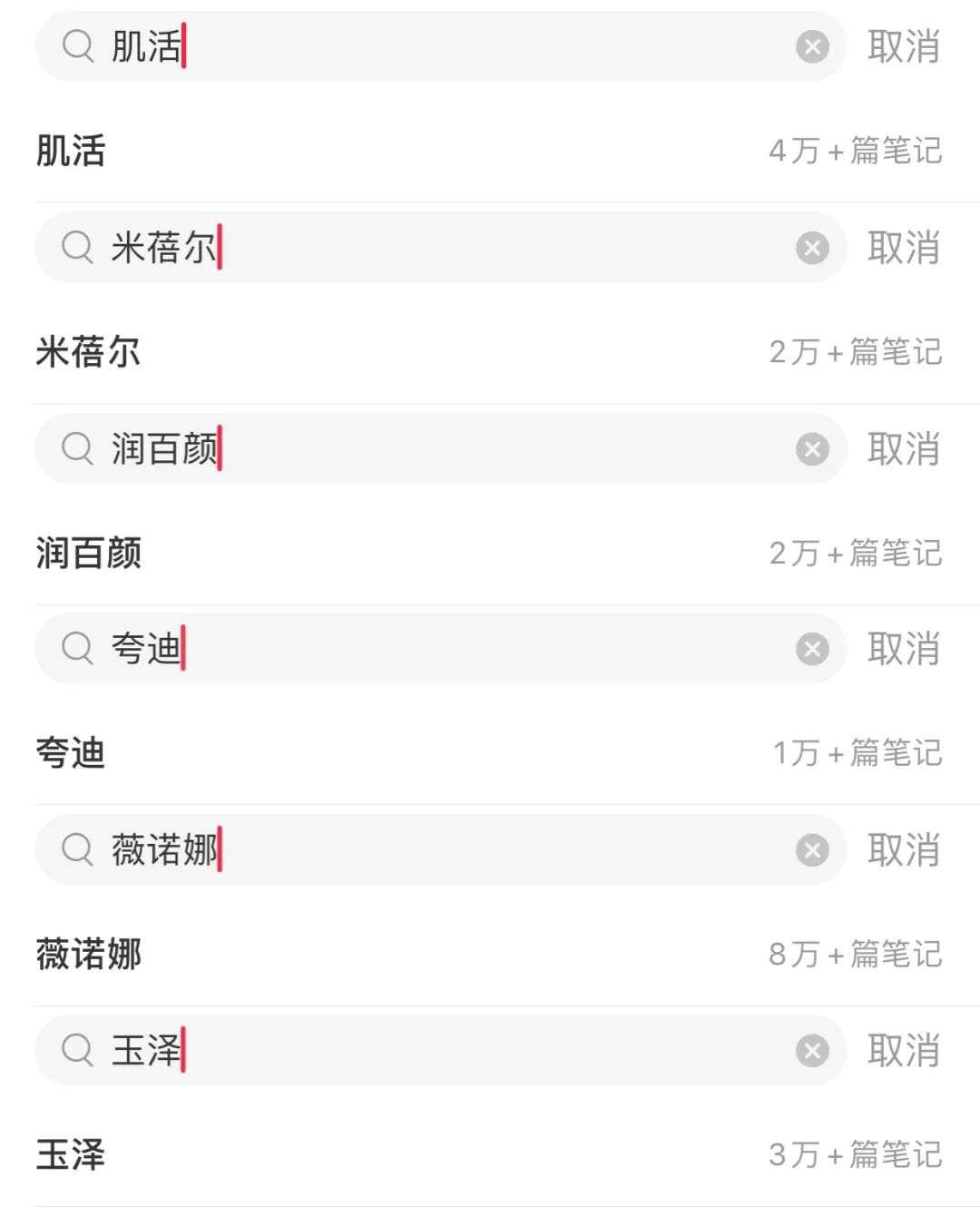 即便是米蓓尔和肌活这两大核心产品,在功能性护肤品赛道内,仍被各自的竞争对手狠狠压制。在小红书上,肌活和米蓓尔的相关笔记数分别为4万和2万,而和两者定位高度一致的薇诺娜和玉泽,相关笔记数分别为8万和3万。即便是主打玻尿酸精华护肤两大王牌润百颜和夸迪,笔记数也仅有2万和1万。