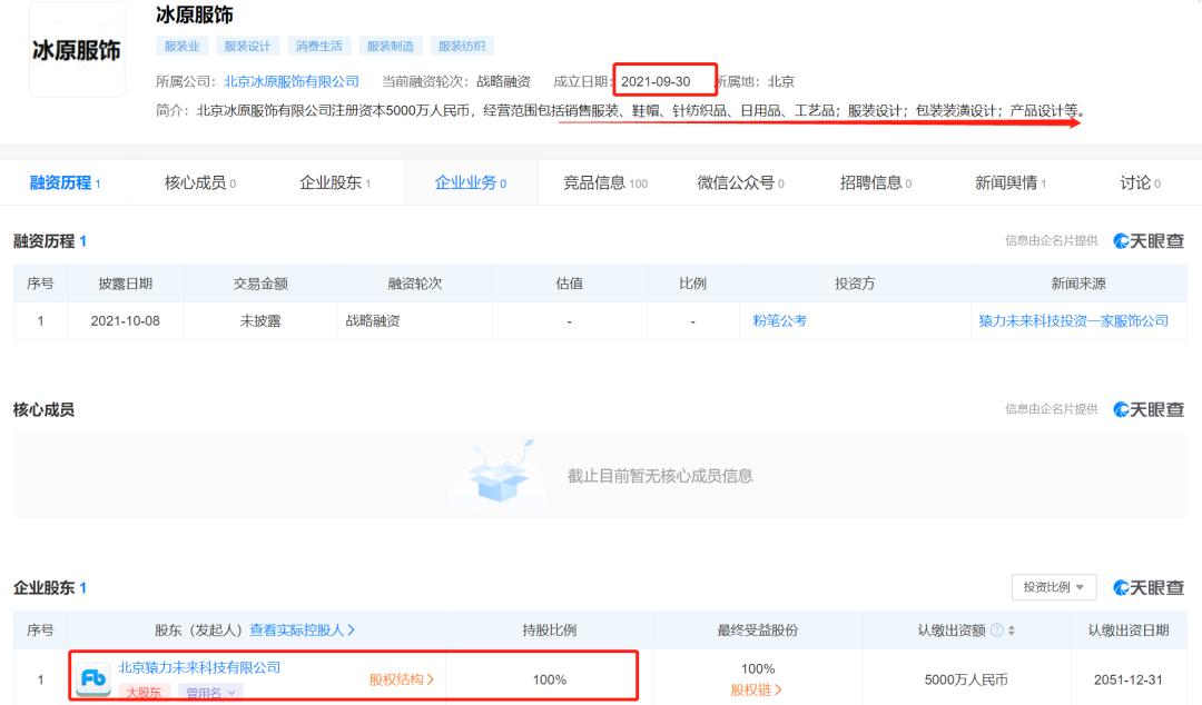 承载猿辅导服装独立业务的,应该就是在今年9月份成立的北京冰原服饰有限公司(以下简称冰原服饰)。