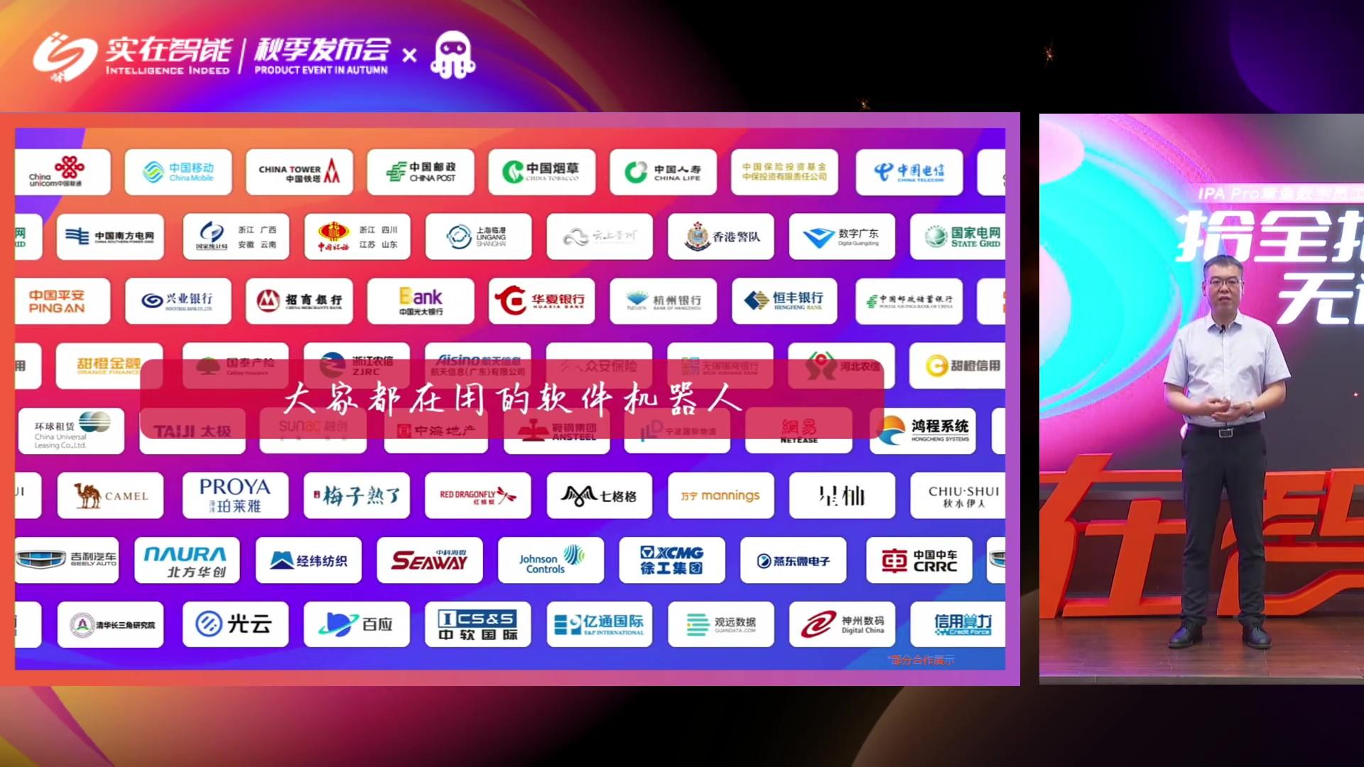 发布会重点介绍了基于业界最新AI技术驱动的“实在 IPA”产品的革命性飞跃和创新性亮点,正式发布IPA Pro章鱼·数字员工,操作各种软件“拾全拾美”,打通各种场景“无边无界”。