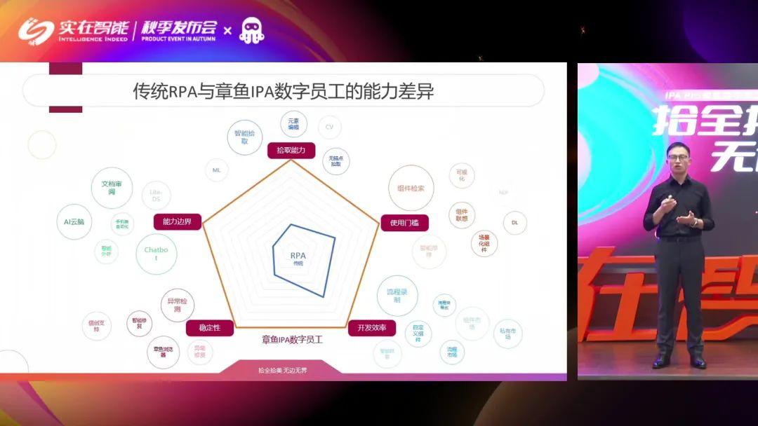 本次发布会另一个重磅看点,是基于实在智能全自研AI产品矩阵加持的“IPA Pro 章鱼·数字员工”——AI技能满点、场景应用丰富、行业全面领先。