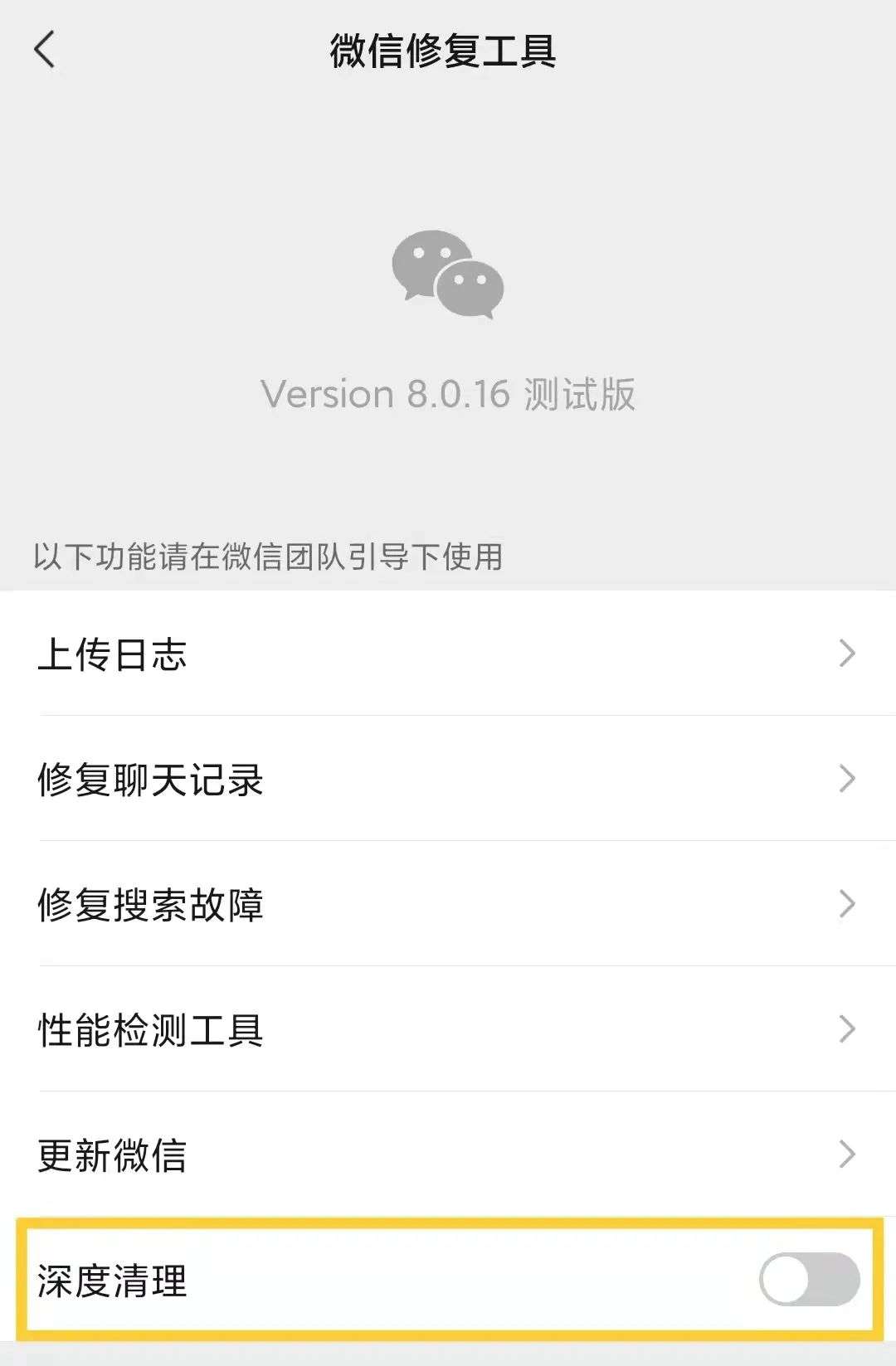 更新完8.0.16测试版的小伙伴,直接在微信搜索框输入「rec」,点击【微信修复工具】。