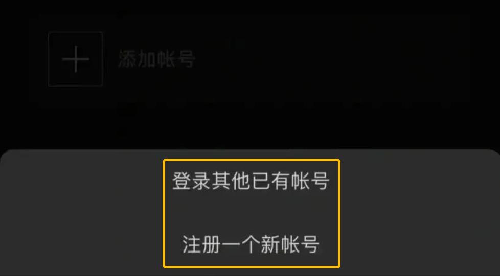 如果出现的是「登录其他帐号」和「注册一个新的帐号」选项,这就对头了,说明你被灰测到了新功能。