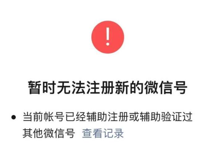 已经辅助注册过的手机号再注册,就会提示「暂时无法注册新的微信号」。