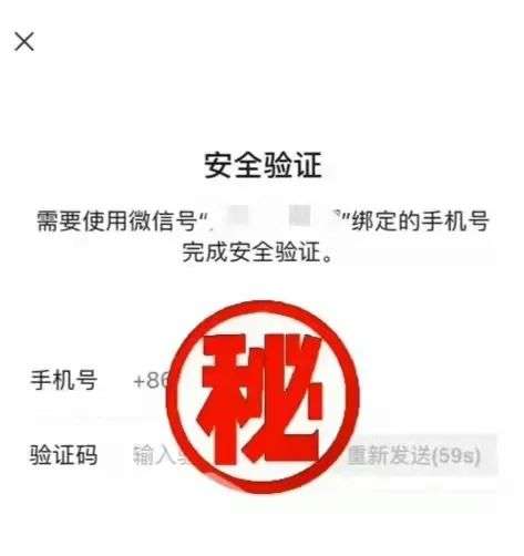 然后就是验证手机号码,这里「安全验证」的手机号码就是原微信绑定的手机号。