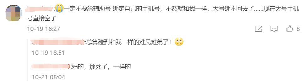 已经有一些网友中招,因为手机号绑定了辅助号,导致原号和手机号解绑。