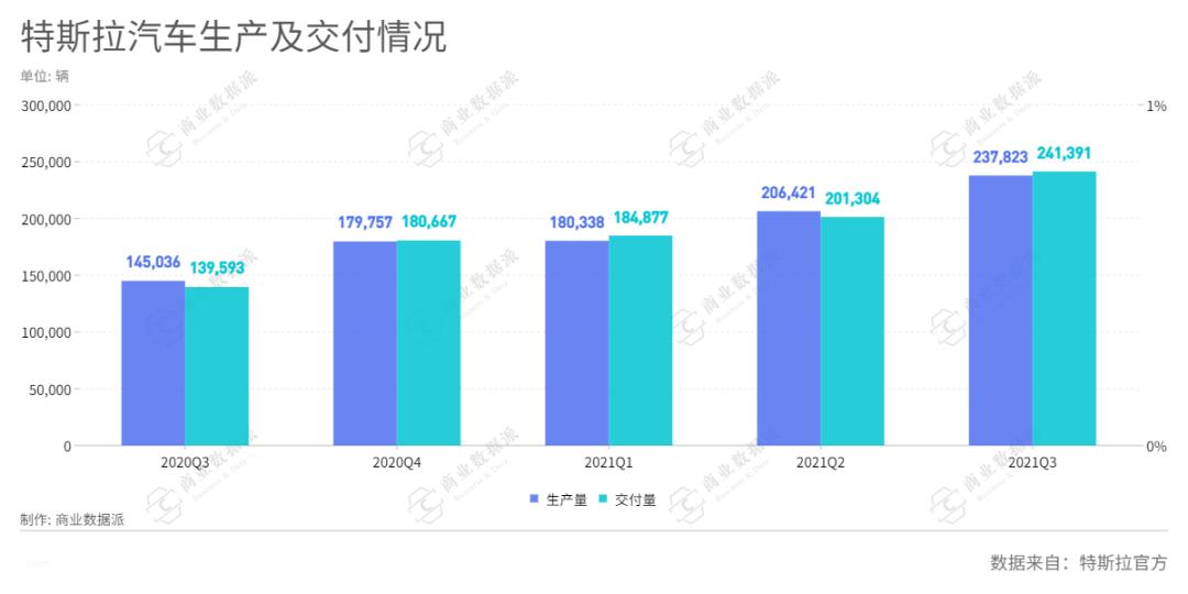 根据财报中的生产量和交付数据,特斯拉近一年整体产能、交付量一直在稳步增长,尽管其中出现过缓慢增长情况,但到今年下半年开始,整体情况变得更加乐观,根据第三季度241391辆交付数据,特斯拉每日销售超过2600辆车,可见其收入增长之快。