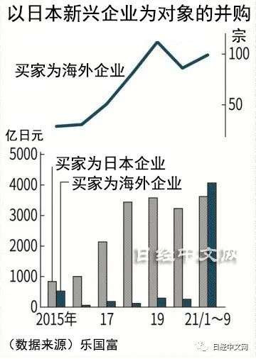 海外资金已迅速成为日本国内初创企业的买家。2021年1~9月,海外以日本初创企业为对象的并购(M&A)金额达到4000多亿日元,为去年同期的22倍,首次超过了日本国内企业的收购额。对于依赖以个人资金为主的首次公开募股(IPO)的初创企业来说,融资难度降低,可以加快增长性投资。