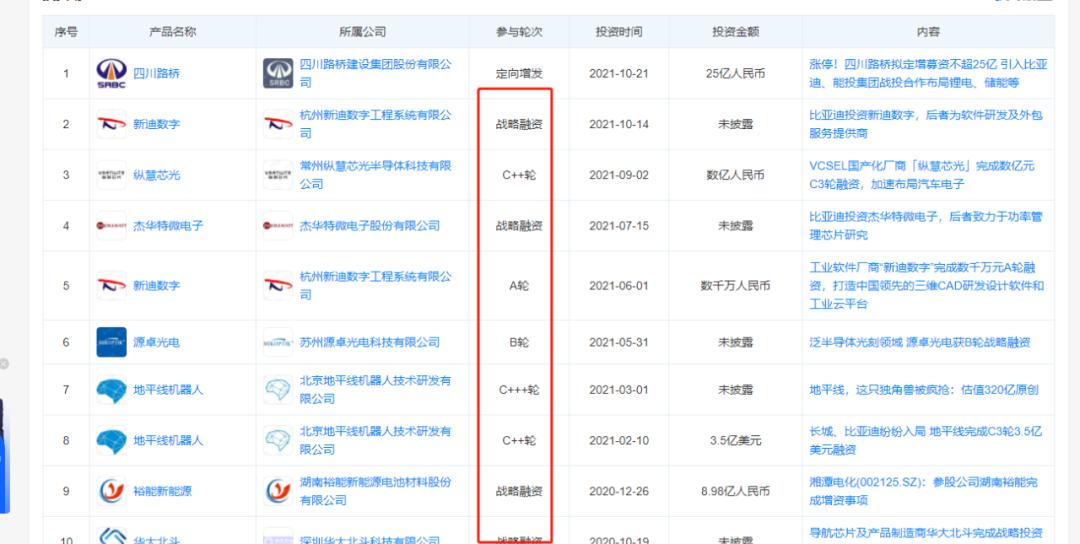 天眼查公开信息显示,比亚迪目前参与了多起战略融资,投资的对象主要集中于芯片、人工智能等领域,目的自然也是为比亚迪可以更好的梳理其主营业务的上下游。
