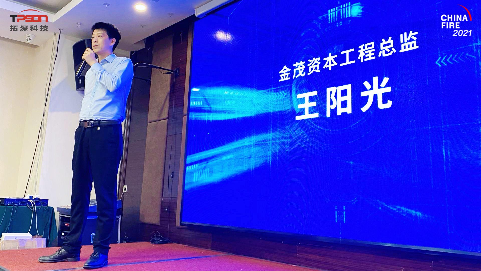 此外,展会同时吸引了深度信任的老客户于此次消防盛宴齐聚北京,拓深邀请数百位优质渠道商就智慧消防解决方案落地应用进行了深入探讨。现场,在消防领域深耕数十年的专家中国建筑科学研究院防火所智慧消防研究室主任王大鹏先生分享了智慧消防的未来发展趋势,更是肯定了拓深的发展前景势必助力消防的变革,现场客户合作代表金茂资本工程总监王阳光先生分享了拓深产品在金茂物业管理应用效果的实例。