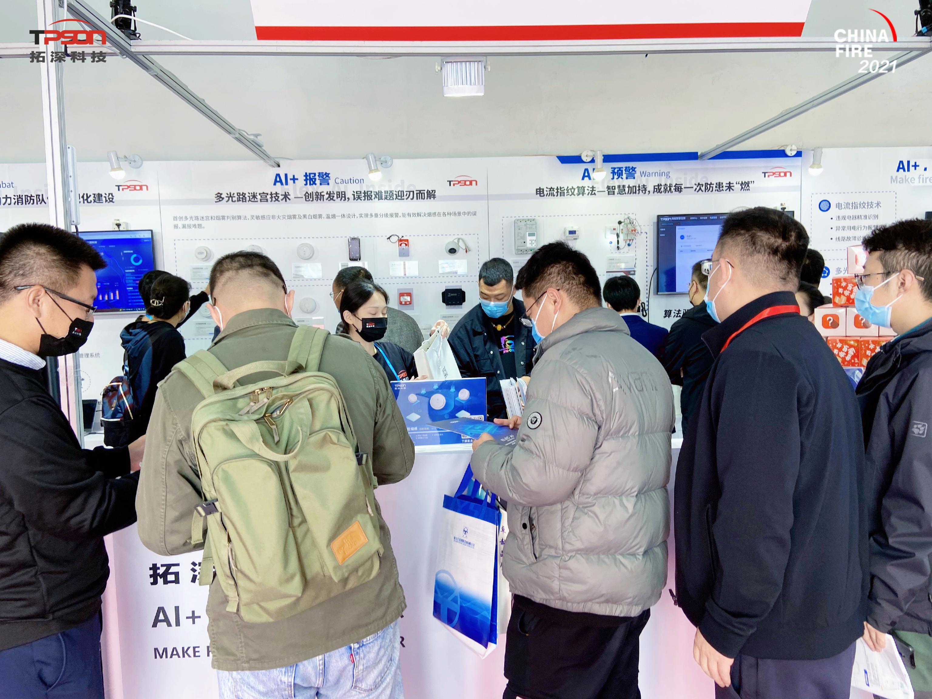 2021年10月12日-15日,由中国消防协会主办的第十九届中国国际消防设备技术交流展览会“CHINA FIRE 2021”在北京隆重举行。该展会是规模和影响力都很大的国际消防设备展览与技术交流盛会之一,受到国内外消防界的普遍关注和好评。此次,拓深科技作为参会者围绕“AI+让消防更智慧”主题,以电流指纹技术为核心,结合人工智能、大数据、物联网、云计算技术、从软件到设备。为大家呈现了全链路的消防AI解决方案。现场吸引各大行业机构专业人士及合作伙伴驻足咨询,彰显出拓深科技在智慧消防领域的强劲实力!