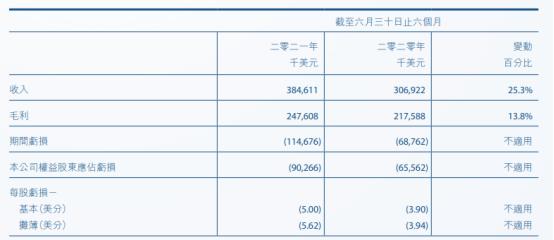 今年上半年,公司实现营业收入3.85亿美元,同比增长25.3%;毛利为2.48亿美元,同比增长13.8%;而归母净利润却亏损9026.6万美元,相比去年同期6556.2万美元的亏损,亏损幅度扩大了37.7%。同时,毛利率也有所下滑,由去年同期的70.9%下滑至今年的64.4%。