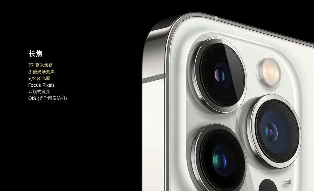 其实 iPhone 的长焦是在往更长的焦距尝试,从 iPhone 12 Pro 2 倍,iPhone 12 Pro Max 2.5 倍到 iPhone 13 Pro Max(包括 Pro) 3 倍。