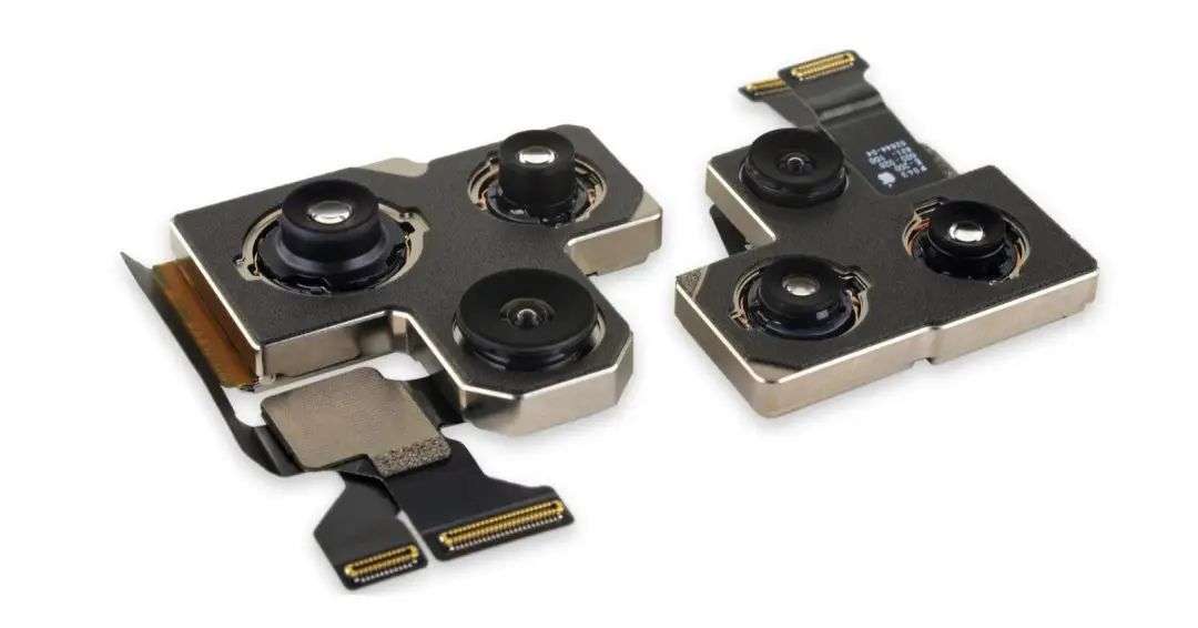 左:iPhone 13 Pro Max 相机模组,右:iPhone 12 Pro Max 相机模组。图片来自:iFixit