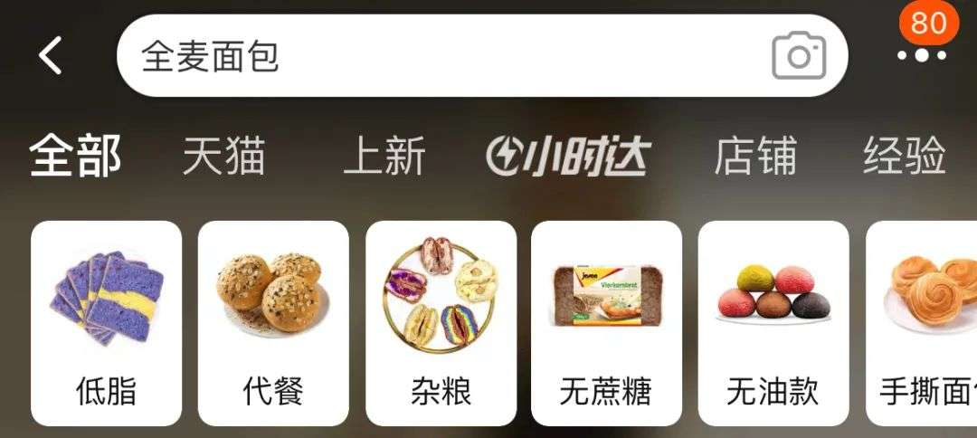 淘宝搜索全麦面包可以获得许多不同产品选择