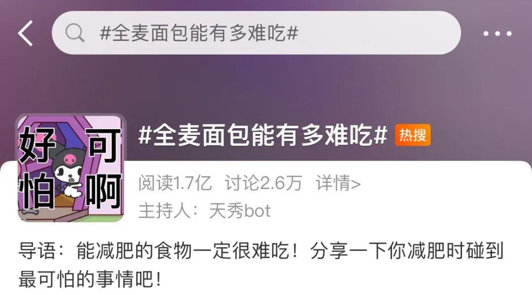因为“难吃”,全麦面包还被网友推上了微博热搜,话题阅读量超过1.7亿。