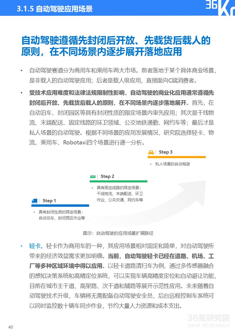 协同智能之自动驾驶:遵循先封闭后开放、先载货后载人的原则,商业化应用逐级展开