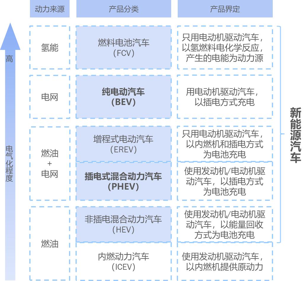 (图示:按照电气化程度区分汽车品类)